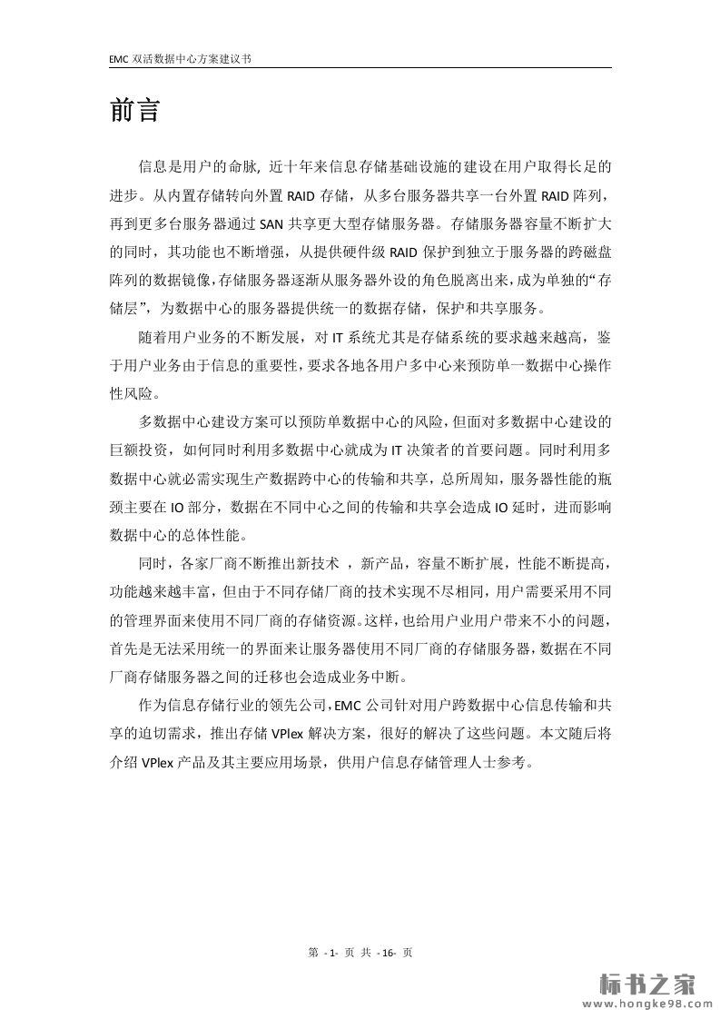 标题:EMC双活数据中心解决方案(16页)