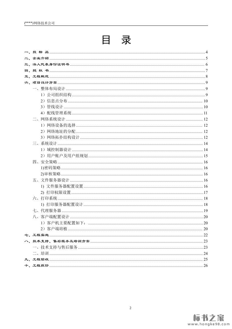 标题:IT公司项目投标书技术文件模板2019(25页)
