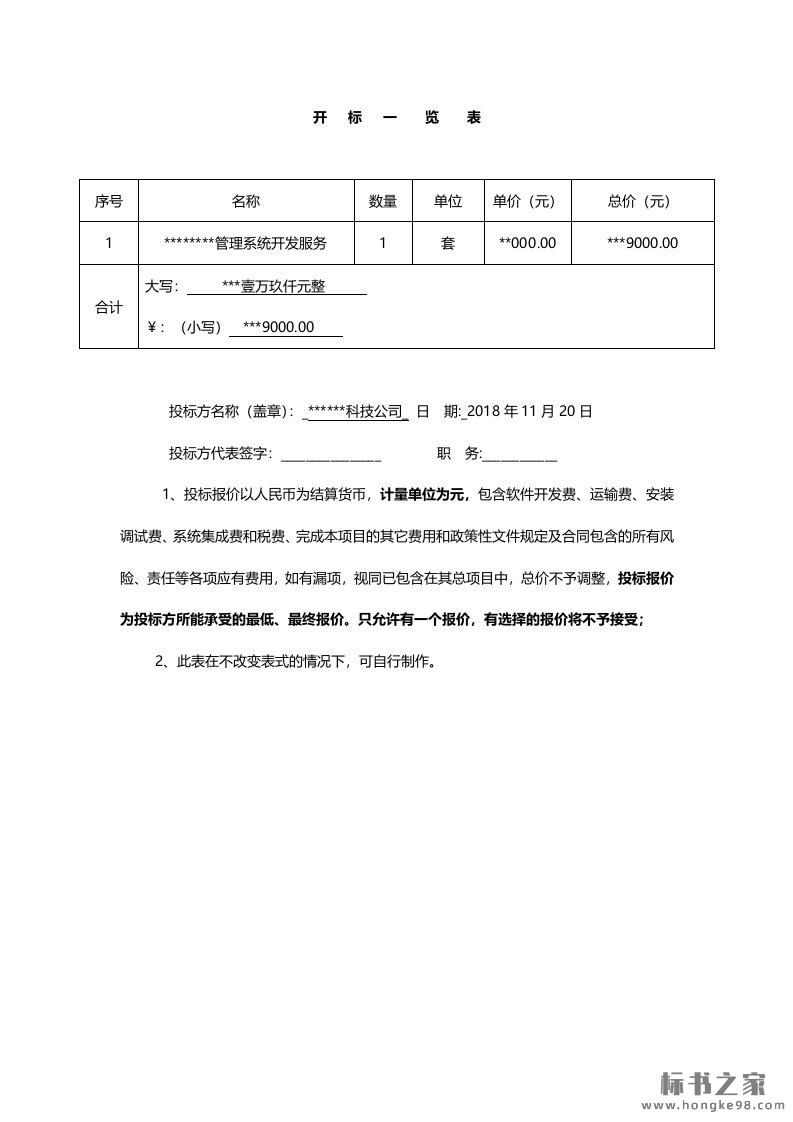 标题:IT软件商务投标正文(1页)