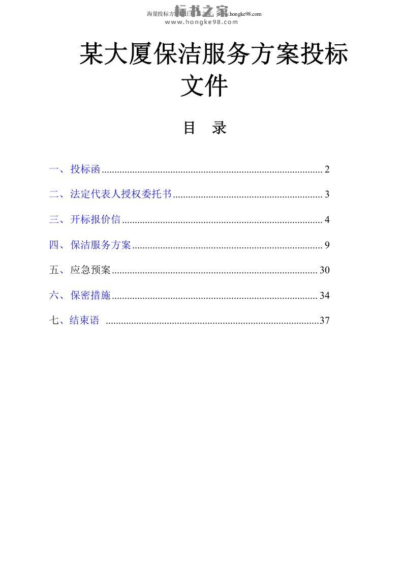 标题:某大厦保洁服务方案投标(37页)