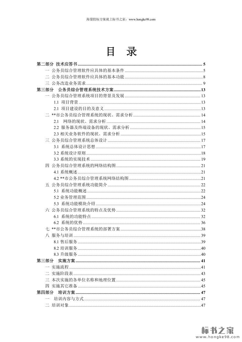 标题:公务员综合管理软件项目投标技术方案(50页)