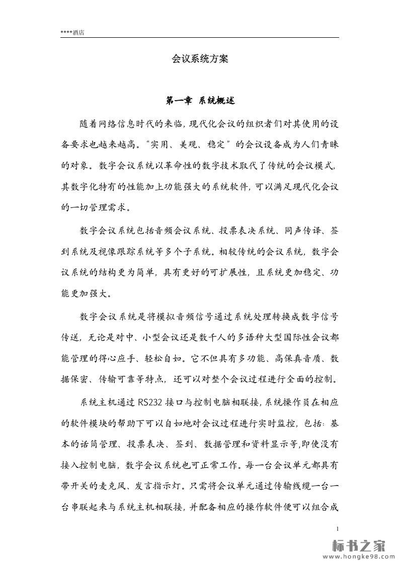 标题:会议系统方案标书范本(47页)